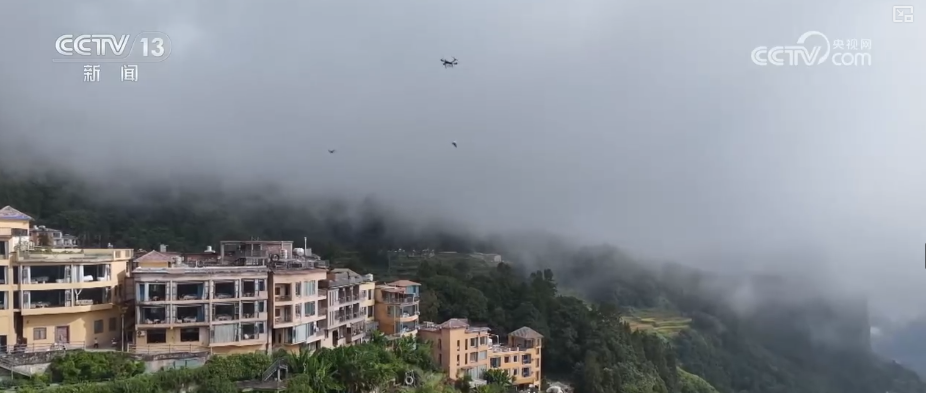 在元阳县哈尼梯田核心区多依树片区,一架架农用无人机正有序飞行于梯田与村落之间。仅需3分钟,就能将一袋重达40公斤的稻谷,从田埂运至村民家中。