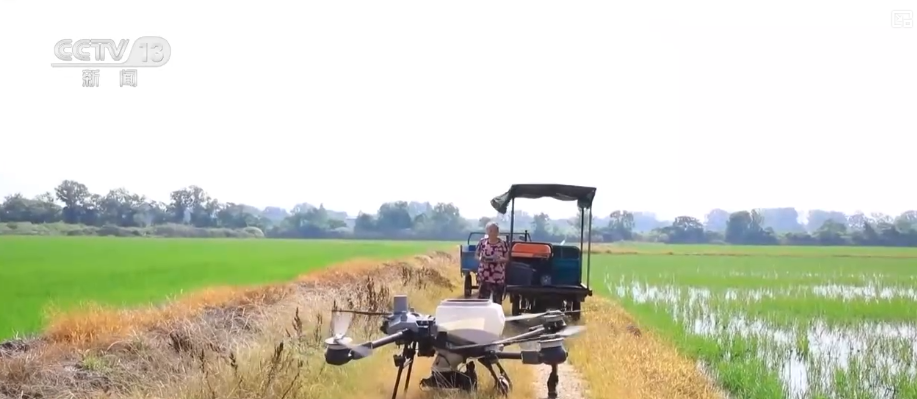 安徽桐城市新渡镇老梅村村民戴淑英说,她用无人机六七年了,她跟大孙子学的。大孙子这六七百亩地特别忙,她给他帮帮忙,现在犁田不用牛,打药不用人背,割稻不用刀,现在机械都是满田飞。