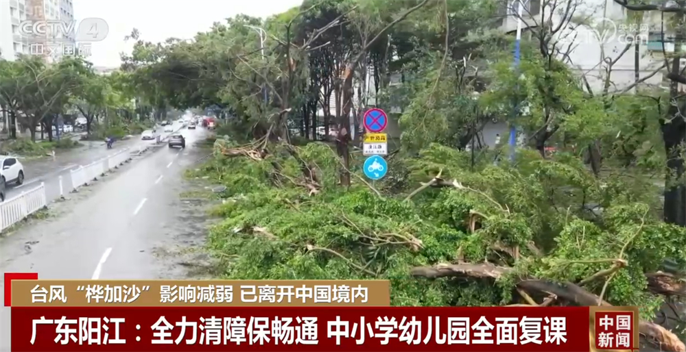 在广东阳江,台风“桦加沙”登陆后,给当地带来了一定的影响,当地于24日晚连夜组织人员全力投入到道路清障工作中,截至25日,阳江市各主干道路已基本畅通。同时,当地也逐步恢复供电和网络服务,各项灾后处置工作正有序推进,阳江市从26日开始,中小学、幼儿园将全面复课。