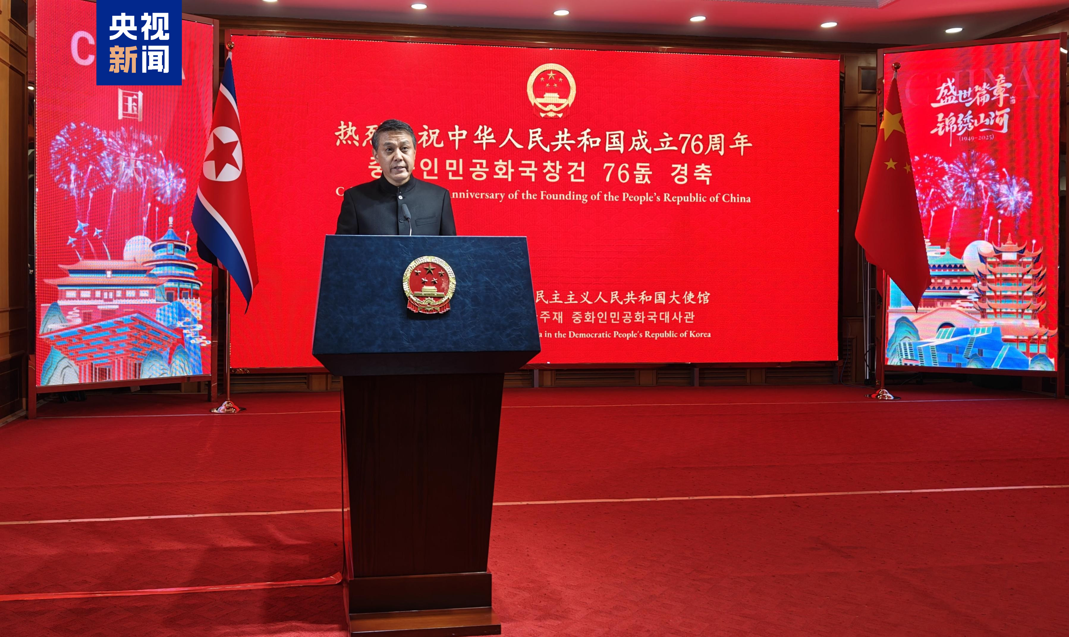 中国驻朝鲜大使王亚军在致辞中回顾了新中国76载光辉发展历程。王亚军表示,当前,在以习近平同志为核心的中共中央坚强领导下,中国坚定走中国特色社会主义道路,大力推进中国式现代化,在为人民谋幸福、为民族谋复兴、为世界谋大同的历史正道上勇毅前行,为变乱交织的世界提供稳定性和确定性。