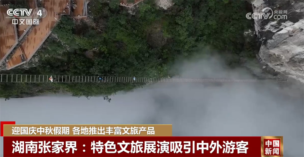 在湖南张家界,各景区依托自然风景推出特色文旅展演和多业态旅游体验。悬崖之上,168米长的钢架垂直悬挂在空中,高空天梯和飞拉达攀岩项目堪称云端上的“勇气试炼场”。