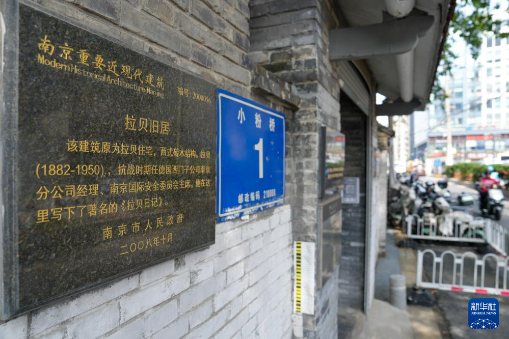 南京大学拉贝与国际安全区纪念馆外的拉贝旧居标牌(9月28日摄)。新华社记者 李博 摄