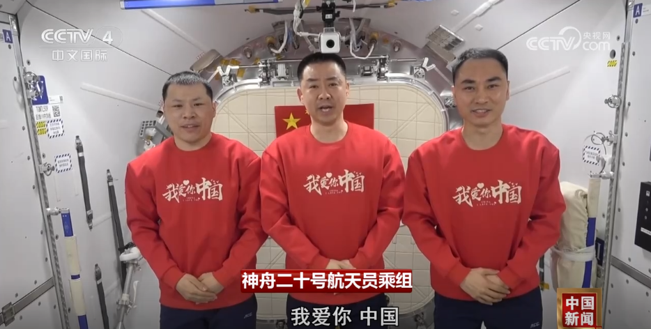 “我们在中国空间站祝福伟大的祖国国泰民安,繁荣昌盛!”