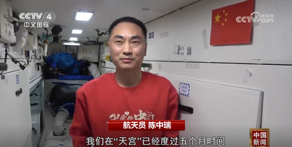 航天员 陈中瑞:我们在“天宫”已经度过五个月时间,顺利完成了四次出舱活动,每当身着舱外航天服在太空中遥望祖国大地,心中充满了自豪和荣光。