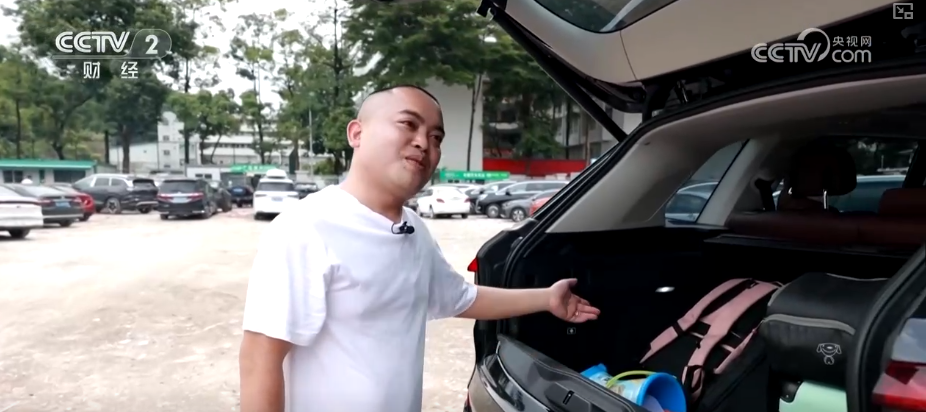 为了真正实现“轻装上阵”,黎先生还将全家人的行李,甚至孩子铲沙的玩具都一并放在了车里进行托运。
