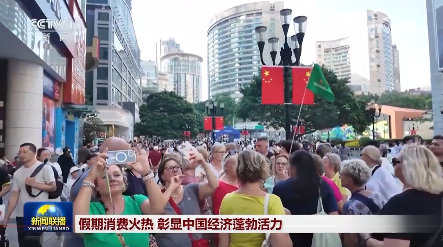 央视网消息(新闻联播):今年国庆中秋假期,我国消费市场新意满满,新场景新业态新模式不断涌现,彰显中国经济蓬勃活力。