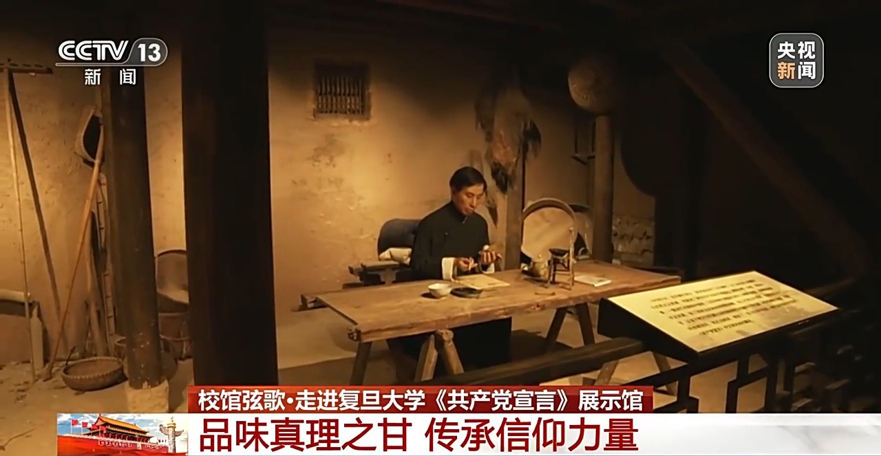 复旦大学学生 温鑫:这样一个简陋的书桌,去想象陈望道先生他当时翻译宣言的时候是怎样一种场景,这背后是怎样一种精神力量?就是当一个人他全身心的投入这种崇高的事业当中的时候,物质条件的艰苦反而被超越了,这种甜是信仰的甜,是使命的甜。