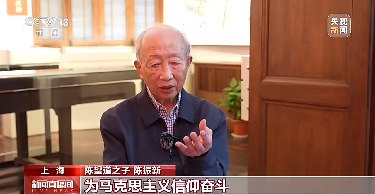 陈望道之子 陈振新:父亲他自己就是一辈子为马克思主义信仰奋斗,就像他自己所说的,我活着一天就为党工作一天。他说希望你们努力工作,为党工作。有一句话叫青年强,则国家强,功成不必在我,功成一定有我。这种精神实际上就是为我们民族复兴担当起这个重任。民族复兴要靠你们这些年轻人。
