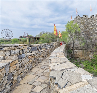 崮顶之上,平坦开阔,古建筑遗迹清晰可见,仿佛大自然精心雕琢的空中花园。在这里,游客们欣赏沉浸式演出,仿佛置身2000多年前的金戈铁马;走进小吃店,品尝一口承载乡愁记忆的沂水豆腐,口感细腻,回味无穷;漫步崮顶,群崮拱卫,烟岚缥缈,心旷神怡……