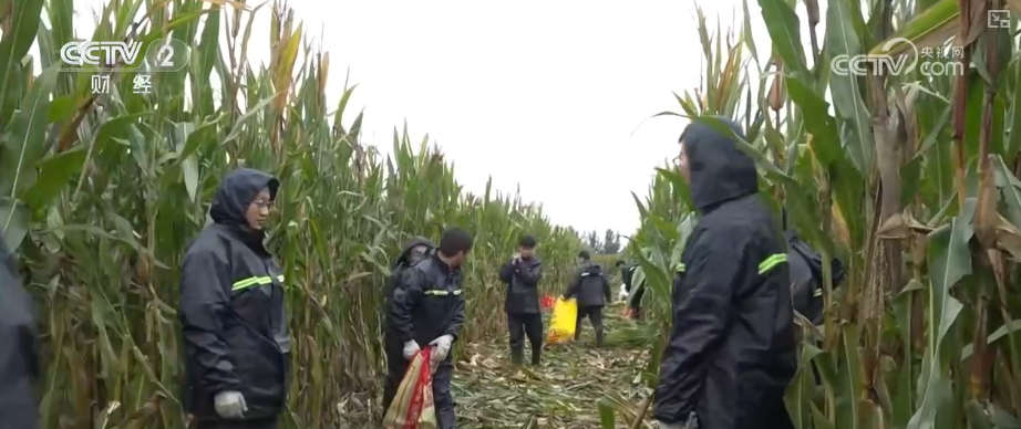 同样,邢台市柏乡县的玉米收割也遇到了降雨。在当地的一处秋粮收储点,工人们正把抢收回来的玉米棒装进网袋,在未脱粒的状态下做防霉存储。