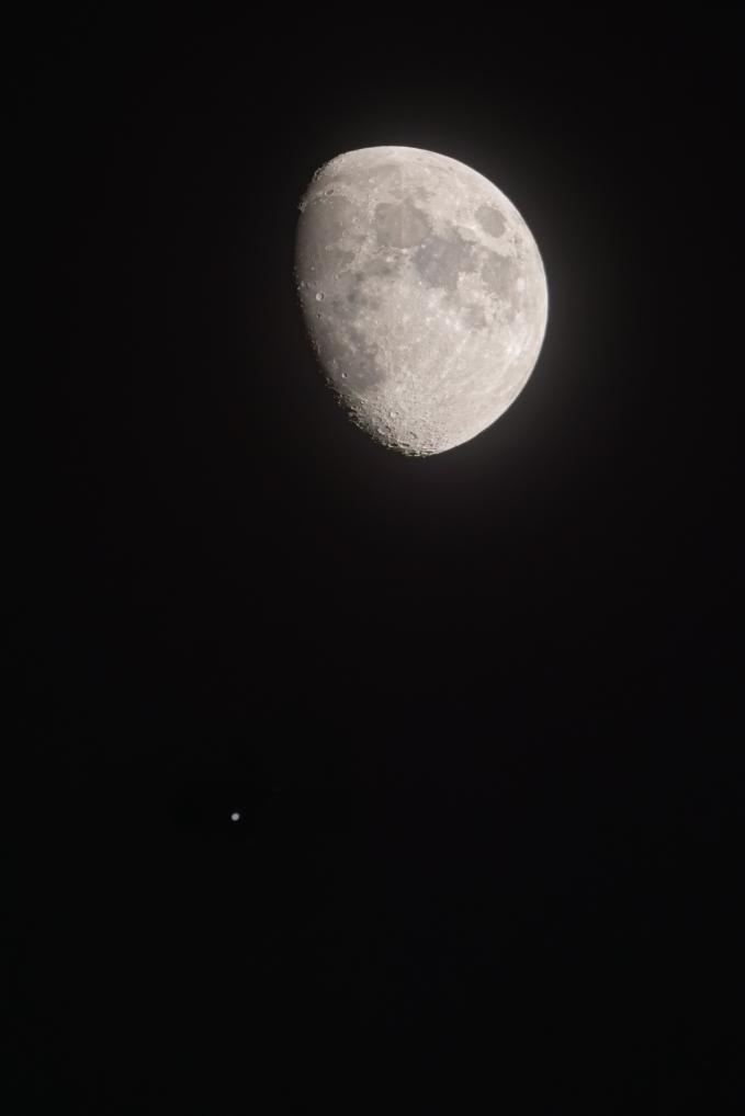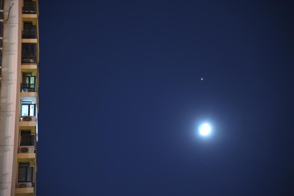 2023年12月22日,在天津西青区拍摄的木星伴月。(刘庆 摄)