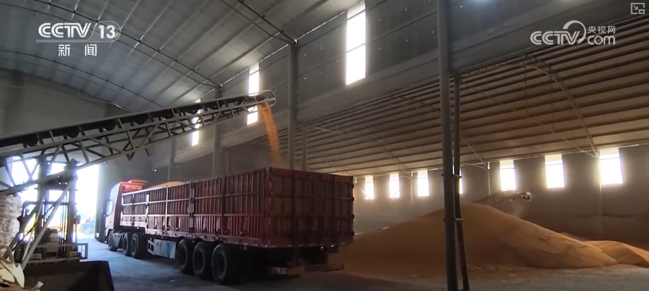 在安阳市滑县城关街道西唐庄村的一处粮食烘干点,一车车刚收获的玉米被送至烘干箱内处理。烘干完成后,玉米通过自动化传输带直接转运至粮库。