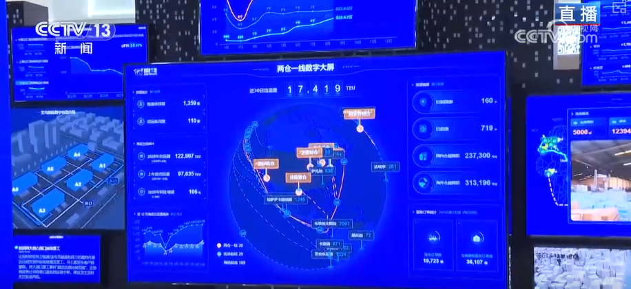 这里被称为义乌全球数贸中心可不仅仅是因为商铺的面积扩大了,在二楼的数字贸易服务中心能找到答案。这些大屏幕上展示的实际上是商城为这里的中小微企业出海提供全流程解决方案,帮助商户节约15%的综合成本。