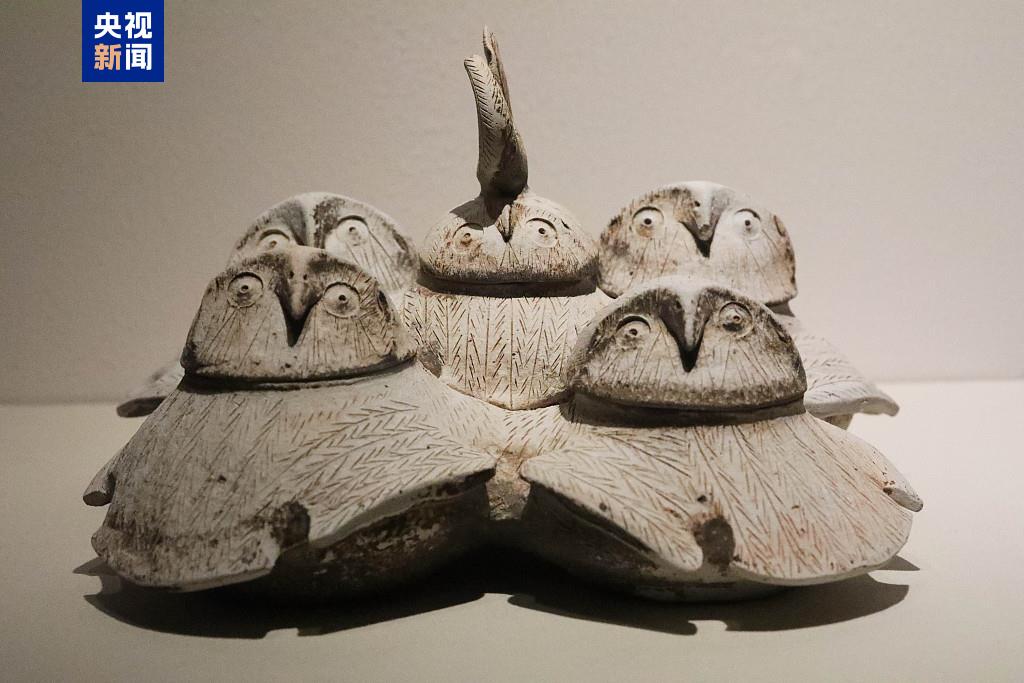 △ 东汉陶鸮形五联罐,广州市文物考古研究院(南汉二陵博物馆)藏。