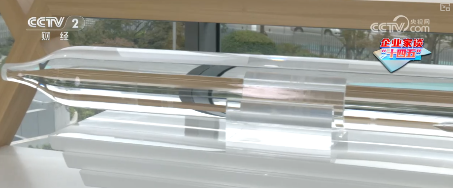 庄丹介绍,这个预制棒是“十四五”期间,通过他们的研发做出来的。尺寸现在也是全球最大的,可以拉将近1万公里的光纤,都是通过他们自主创新实现的。