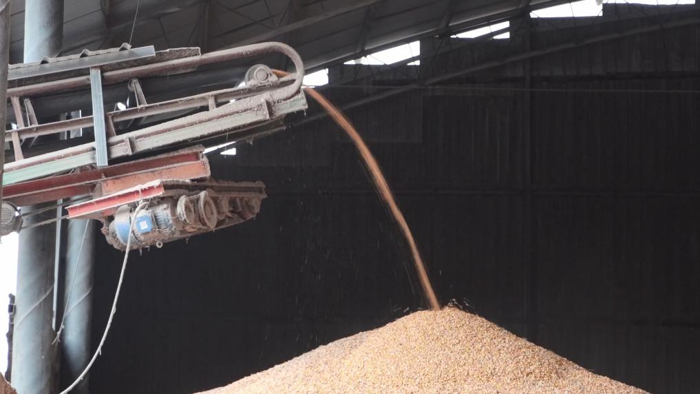 河北省邯郸市肥乡区刚收获的玉米通过传送带输送至仓储区域。新华社记者 王昆 摄