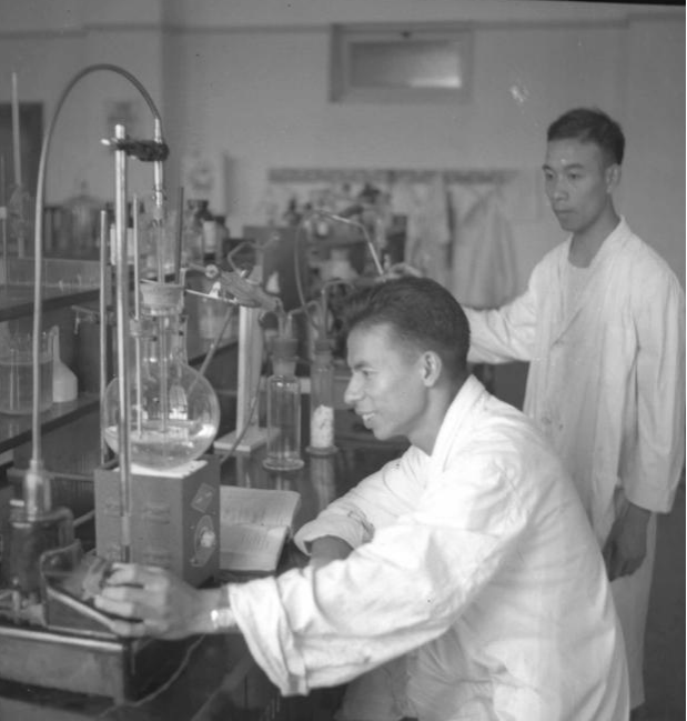1958年,钱慰宗在实验室开展科研工作。新华社发