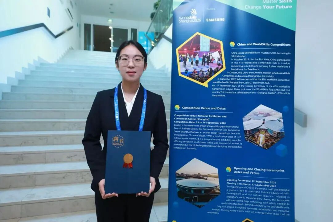 当地时间10月13日至10月16日,2025年世界技能组织全体成员大会在克罗地亚举行,来自河南化工技师学院的世界技能大赛冠军鲁静怡代表亚洲接受聘书,成为全球11位“上海世赛全球技能梦想大使”之一,而她刚刚度过自己的20岁生日。被称为“技能奥林匹克”的世界技能大赛是由世界技能组织主办的每两年一届的世赛,是目前全球地位最高、规模最大、影响力最大的职业技能竞赛。第48届世赛将于明年在上海举行。作为唯一的中国代表,鲁静怡将与另外10位全球顶尖技能人才一起,通过个人经历展现技能教育改变命运的力量,推动全球青年技能运动发展。