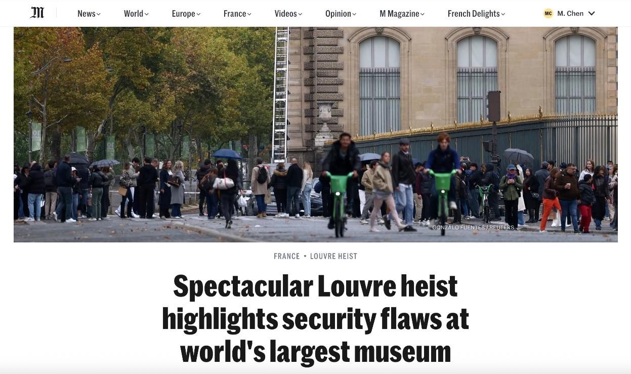 劫案不仅暴露了卢浮宫在安防体系上的脆弱,更折射出法国博物馆系统在文化守护与公共安全之间的深层困境。