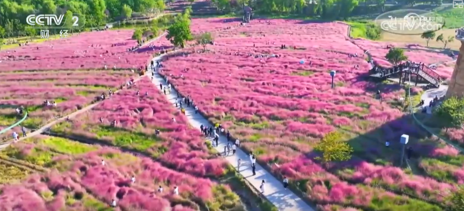依托丰富的植被与精心设计的景观,再加上山地的地形,当地打造出层次分明、色彩斑斓的“花海梯田”。