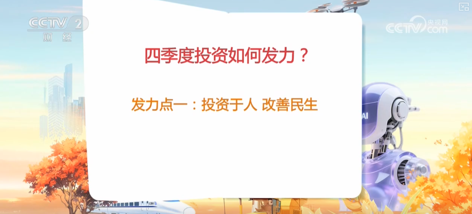 国家信息中心经济预测部产业经济研究室主任魏琪嘉介绍,四季度整个投资的重点领域,很多集中于民生项目建设方面,包括城市更新改造,地下管廊改造,包括停车场建设以及高标准农田等,这些事关民生的一些重点的领域,实现这种投资于物与投资于人的这种高效协同,更多的投资于人。
