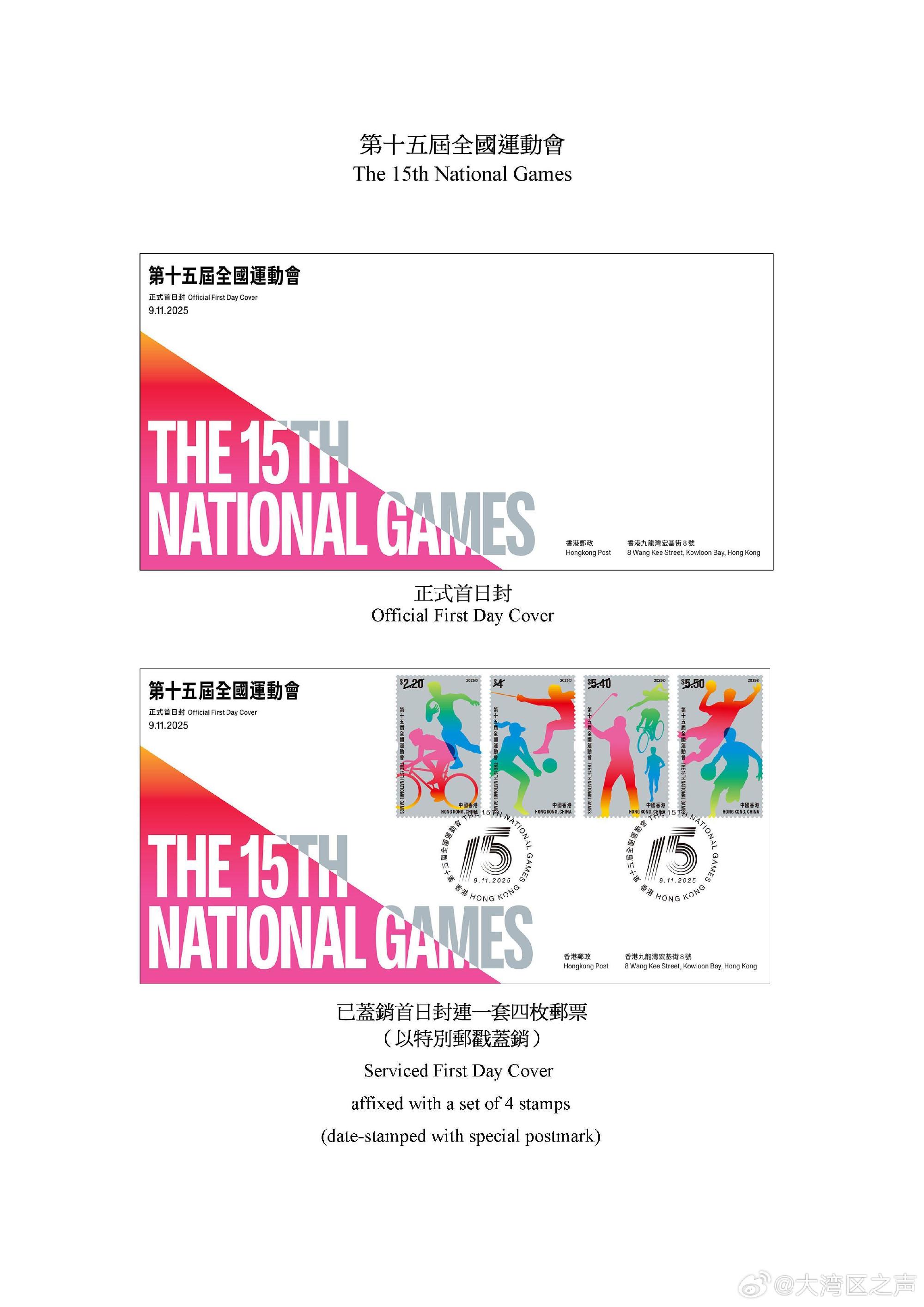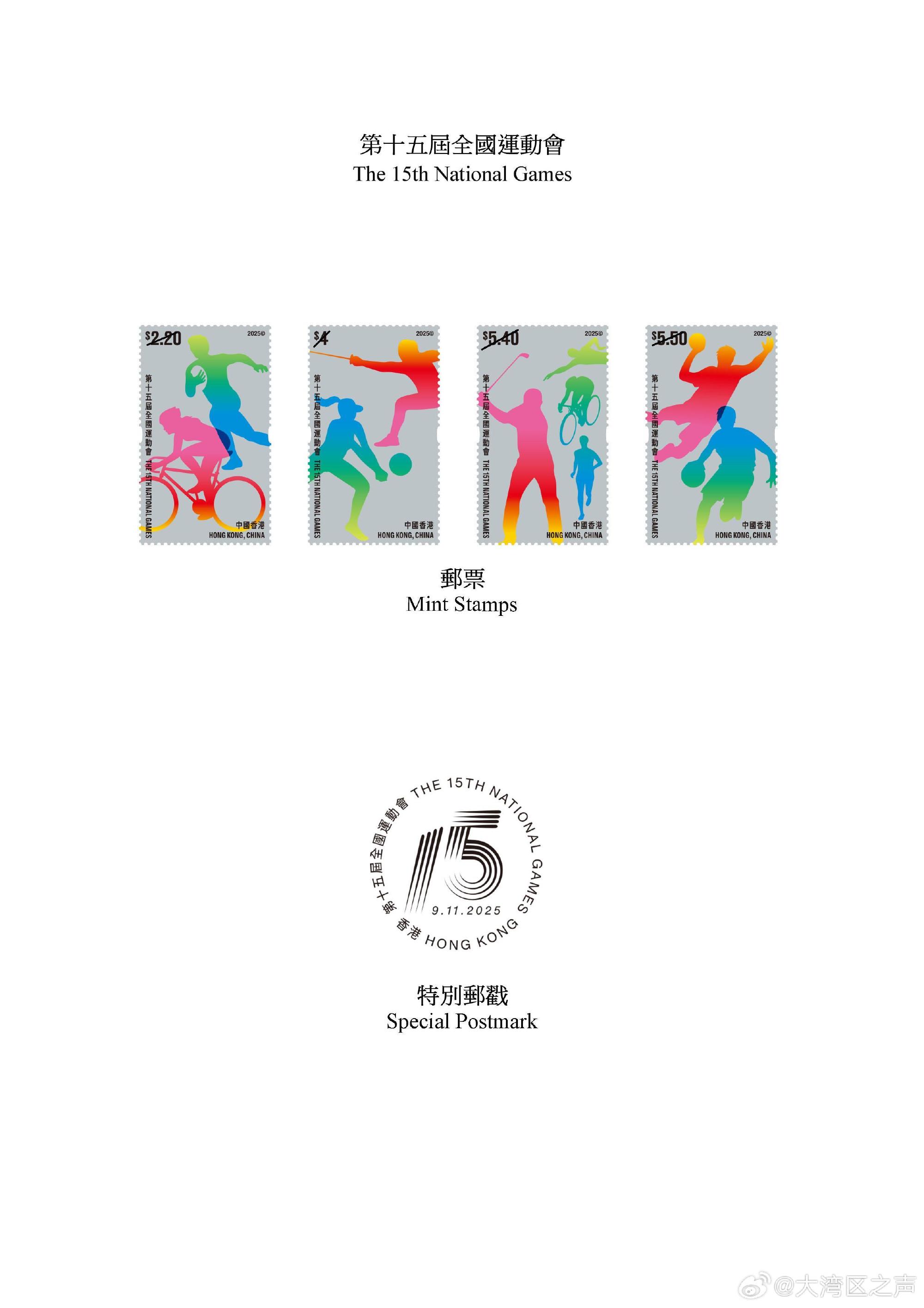 :据@大湾区之声 香港邮政今日(10月22日)宣布,以“第十五届全国运动会”为题的特别邮票及相关邮品将于11月9日全国运动会开幕当日推出发售。
