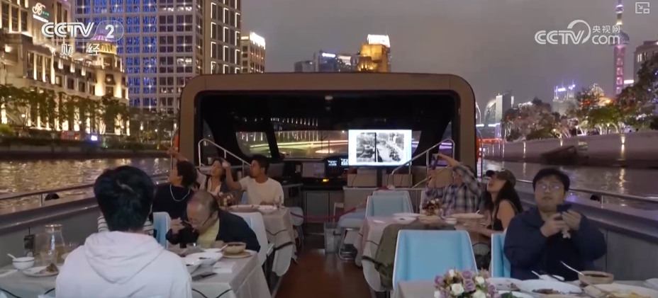 上海浦江游览集团总经理洪朝辉介绍,餐饮主题航班,他们不断增加演出内容。像近景魔术这种沉浸式的演绎非常受到市场欢迎。在大概将近一个月的时间里,游船以及商场的游客接待量双双都创了历史新高。