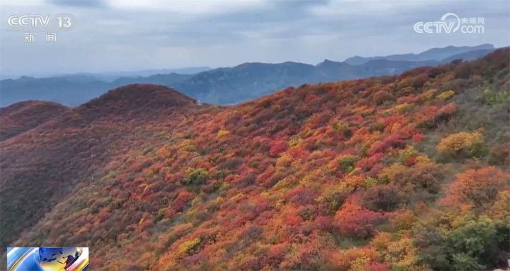 走进河北邢台市佛照山,漫山遍野的黄栌如同大自然精心绘制的杰作。红的似火、黄的如金、橙的若霞,深浅不一的色彩交织叠加,从山脚绵延至山顶,仿佛打翻了调色盘。
