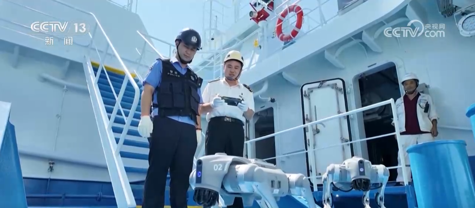 而在江苏扬州,边检站联合海关,首次集中使用“机器狗+无人机”,对丹麦籍化工品船舶“特恩兰德”轮开展全方位检查,仅用30分钟就完成了传统模式下需50分钟的查验工作,效率提升超40%。