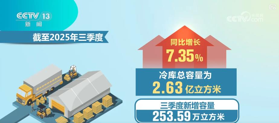 在各级政府规划引导与市场需求带动的双重作用下,我国冷库规模持续扩容。截至2025年三季度,冷库总容量为2.63亿立方米,同比增长7.35%,其中,三季度新增容量253.59万立方米。专家表示,在冷库去存量化的大背景下,冷库建设逐渐趋于理性,冷库容量增速放缓。同时,企业调研显示,冷库租金低位运行,企业利润空间受到挤压。