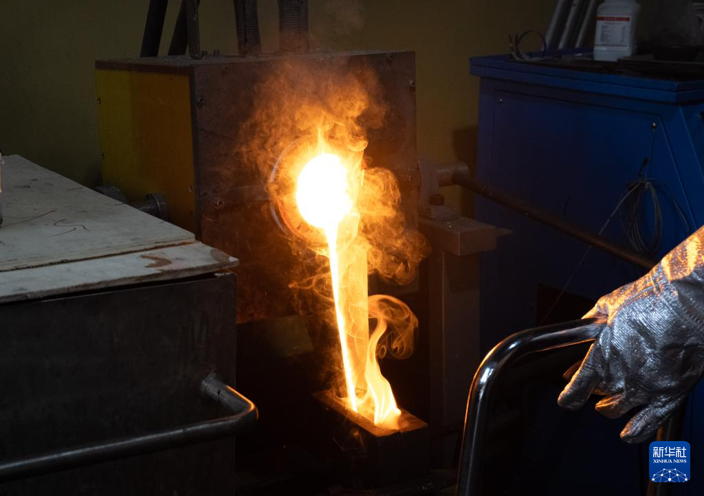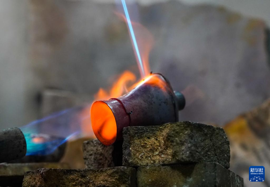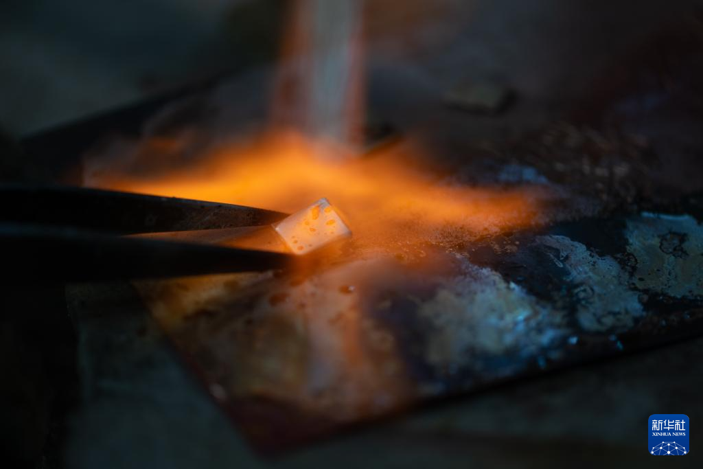 10月25日,匠人在昆明乌铜走银传习馆炼制乌铜。新华社记者 高咏薇 摄