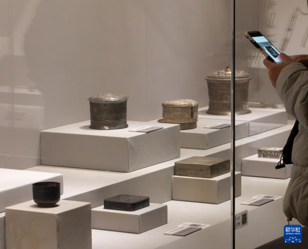 10月25日,观众在云南省博物馆拍摄乌铜走银墨盒。新华社记者 江文耀 摄