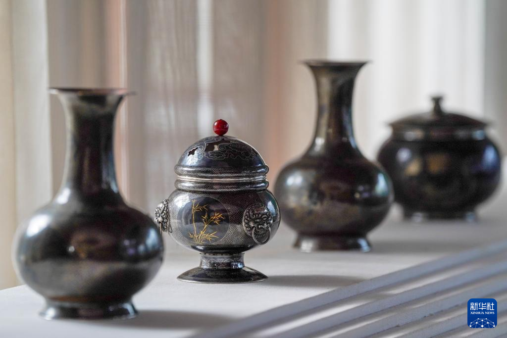 10月25日在昆明乌铜走银传习馆拍摄的乌铜走银作品。新华社记者 彭奕凯 摄