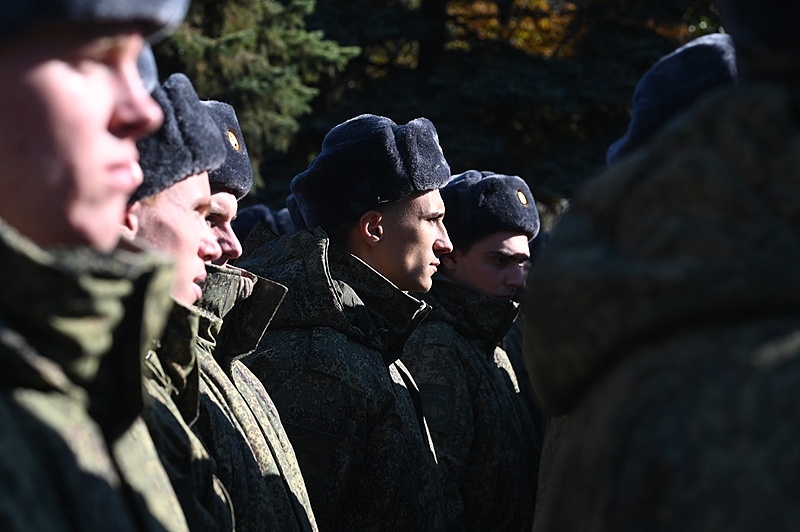 △当地时间10月15日,俄罗斯罗斯托夫州巴泰斯克,当地征兵中心举行仪式。