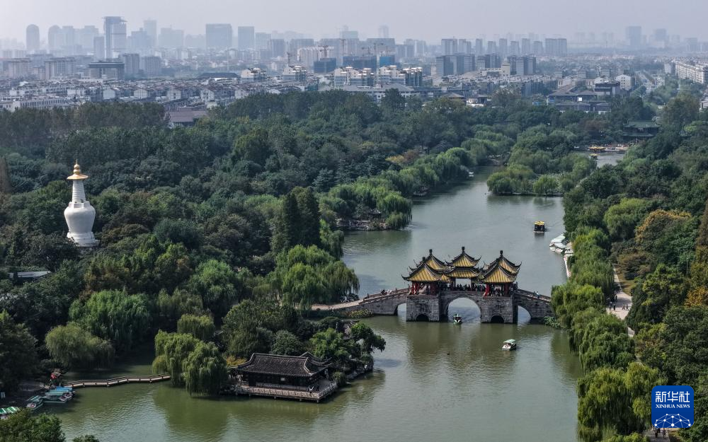 10月11日拍摄的江苏省扬州市瘦西湖景区(无人机照片)。新华社记者 李博 摄