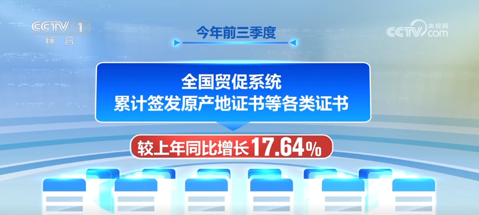 今年前三季度:贸促系统签发原产地证书同比增长17.64%