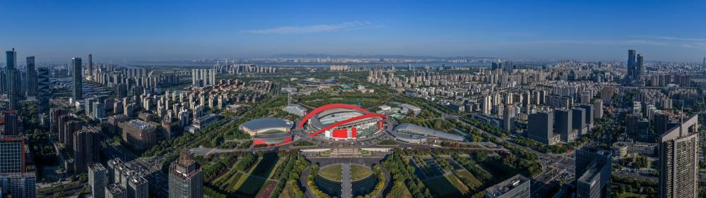这是10月29日无人机拍摄的南京奥体中心(无人机全景拼接照片)。新华社记者 李博 摄