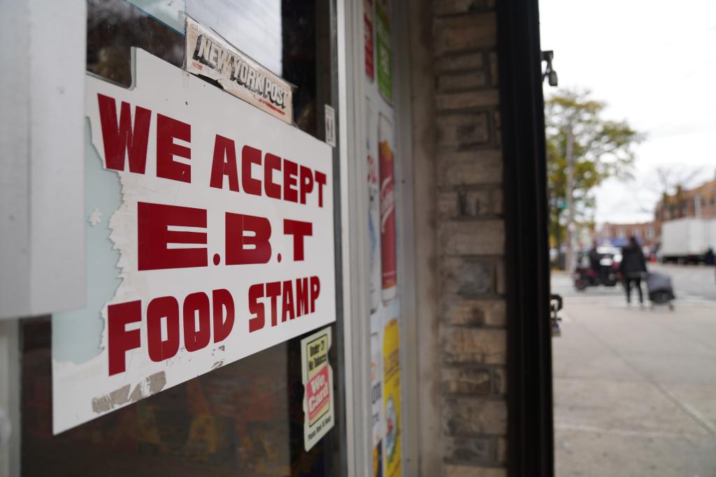 这是10月31日在美国纽约拍摄的一家接受“补充营养援助计划”食品券的商店。新华社记者张凤国摄