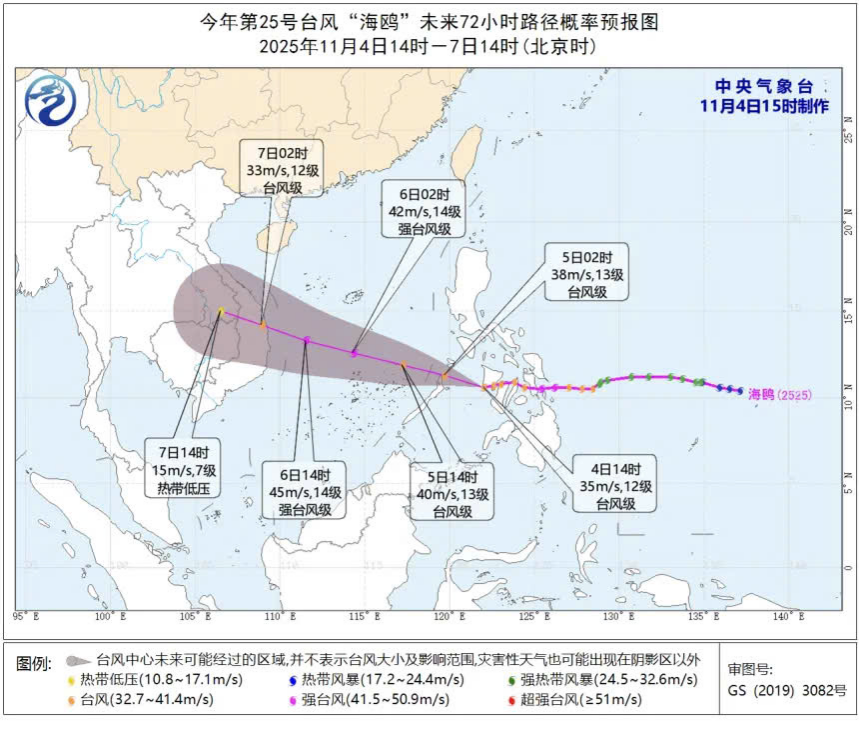 央视网消息:据“中国驻越南大使馆”微信公众号消息,据中国和越南气象部门预报,台风“海鸥”将于11月6日夜间在越南中部沿海登陆,5日至6日越中部地区将出现强降雨,大范围降雨量将达200至400毫米,局部地区将超过600毫米。