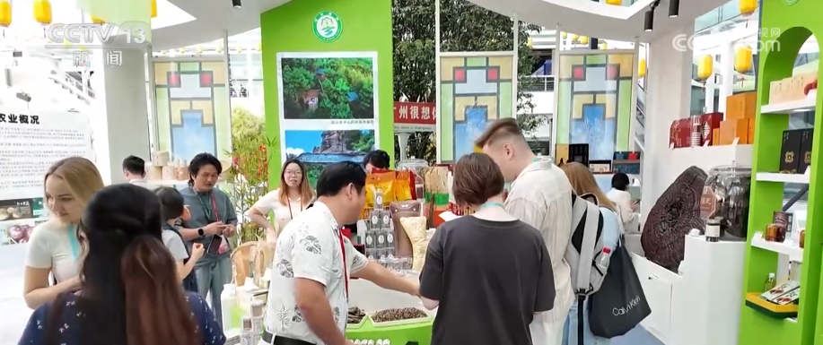 在乡村振兴特色产品展区,人气也不断攀升。来自山乡的特色产品,正成为远销海外的“香饽饽”。