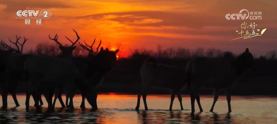 当海水退去,潮汐树自由生长,天南海北的候鸟陆续抵达,空中的鸟浪与麋鹿拨开的水浪遥相呼应。