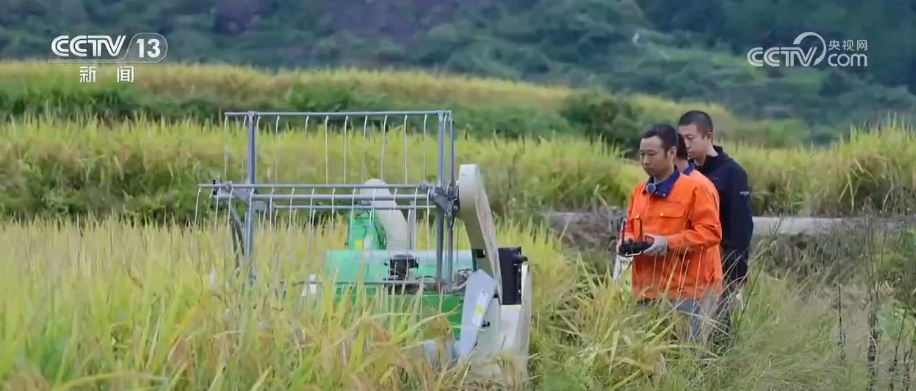 在梯田里采访时,记者发现收割机机手和无人机机手的分工协作,不只是寻找路线,更是在为未来农机作业模式探索全新的配合方式。没路的时候,无人机运来梯子,粮食装满后,无人机再运下山。这样配合起来,作业效率显著提升。