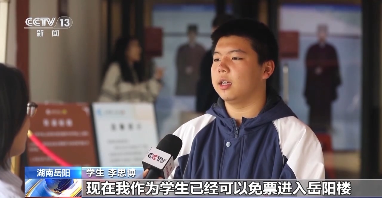 学生 李思博:现在我作为学生已经可以免票进入岳阳楼,但是我还是想要来挑战一下这个背记机器,并且在背记完之后我还可以获得一张证书,这也让我更加有成就感。