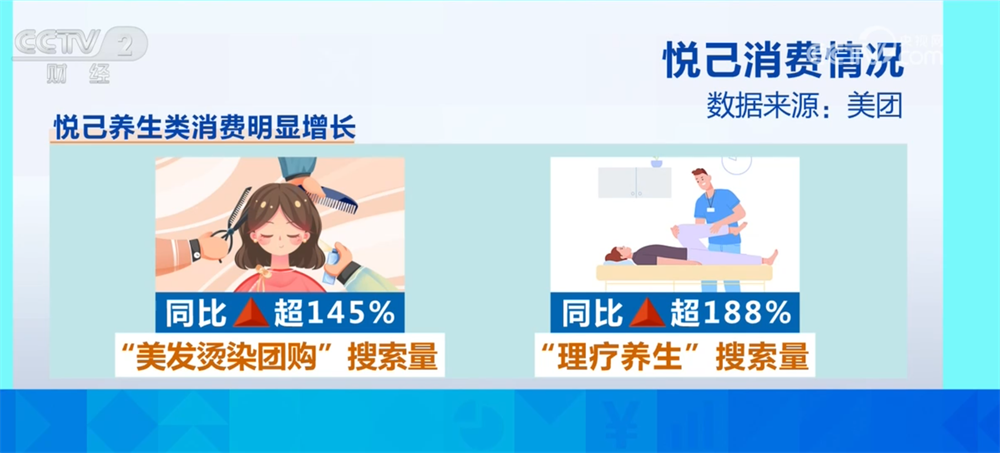 某平台数据显示,今年以来悦己养生类消费明显增长,“美发烫染团购”搜索量同比增长超145%,“理疗养生”搜索量同比增长超188%。