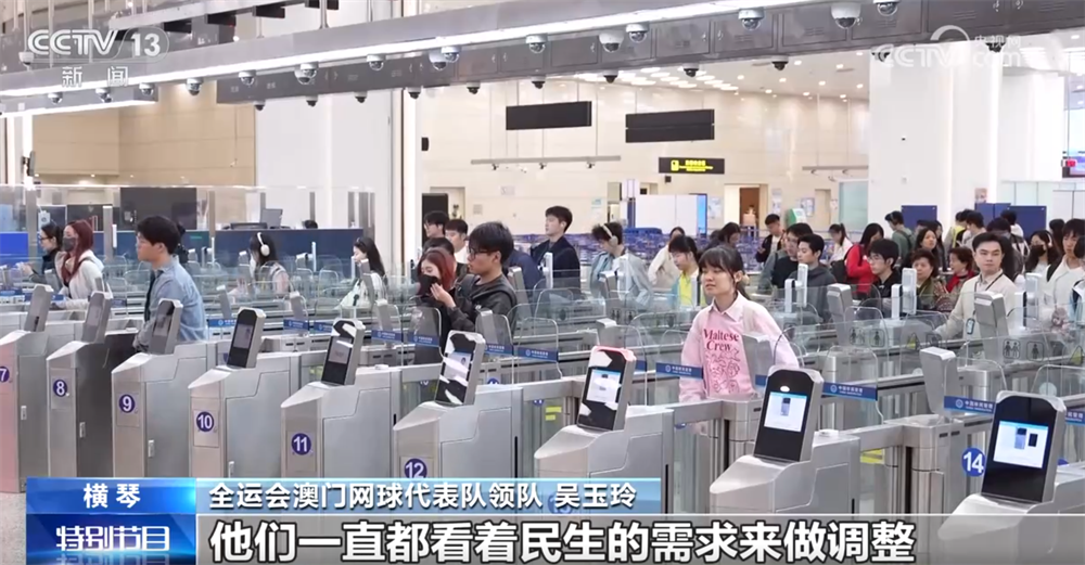 全运会澳门网球代表队领队吴玉玲称:“我们通关真的非常便利,因为有一个是全运会的特别通道。常来横琴这边的,他们一直都看着民生的需求来做调整。”