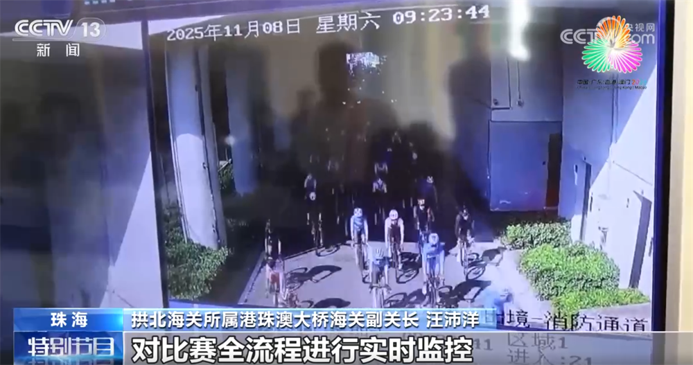 11月8日上午,第十五届全运会一项跨越粤港澳三地的比赛——公路自行车男子个人赛进行,这是全运会历史上首个跨境自行车赛事,100多名运动员在骑行中6次穿越口岸,却无需1秒停顿。