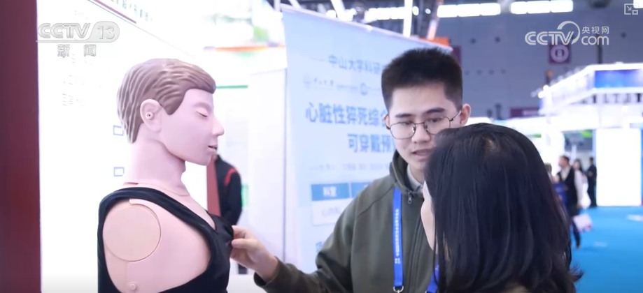 在中山大学展台,记者看到了这套“心脏性猝死综合防治人工智能可穿戴预警设备”,它不仅解决了传统设备穿戴不舒适、信号噪声大且弱等短板,还可以通过深度学习算法,精准识别异常心电特征,预测猝死风险,为心血管疾病早期干预提供依据。