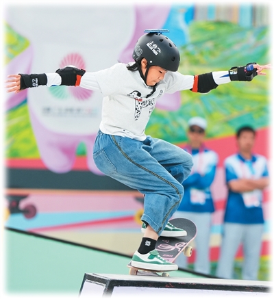 上海队选手徐琳泷在滑板比赛中。
