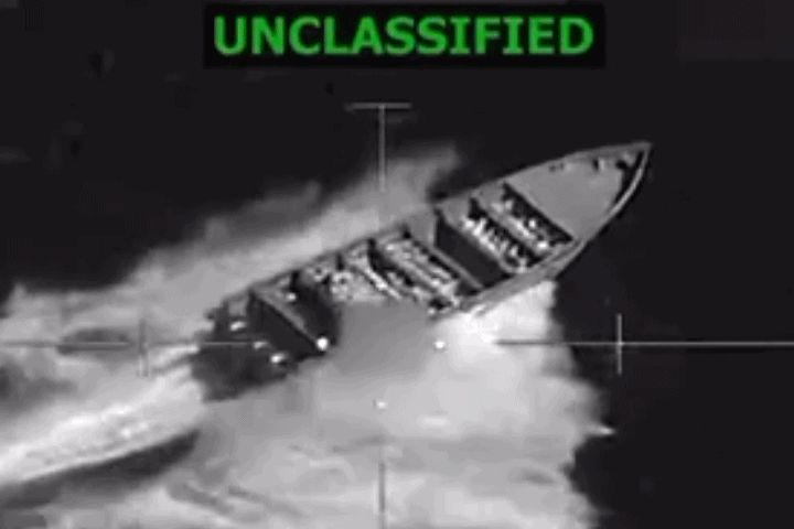 美国南方司令部称,该船只在东太平洋从事毒品走私活动。