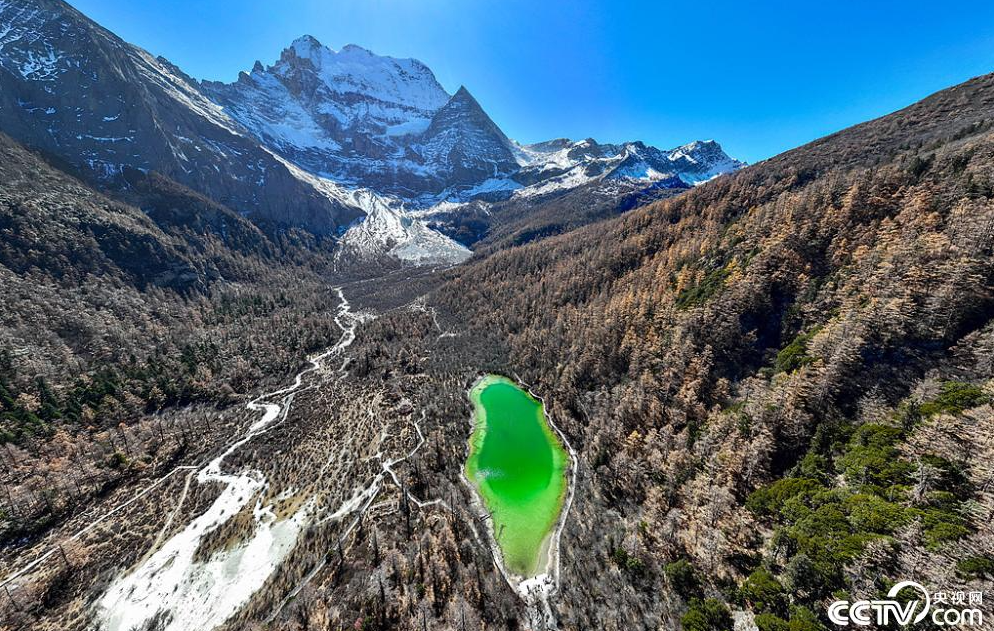四川甘孜州:稻城亚丁山间湖泊宛若绿宝石。